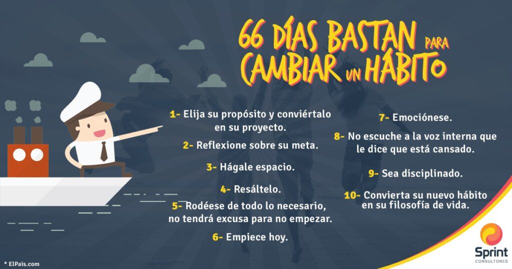 Hasta hace poco se pensaba que modificar y automatizar un hábito requería 21 días. ¡Demasiado optimismo! Un estudio reciente de Jane Wardle, del University College de Londres, publicado en European Journal of Social Psychology, afirma que para convertir un nuevo objetivo o actividad en algo automático, de tal forma que no tengamos que tirar de fuerza de voluntad, necesitamos 66 días.