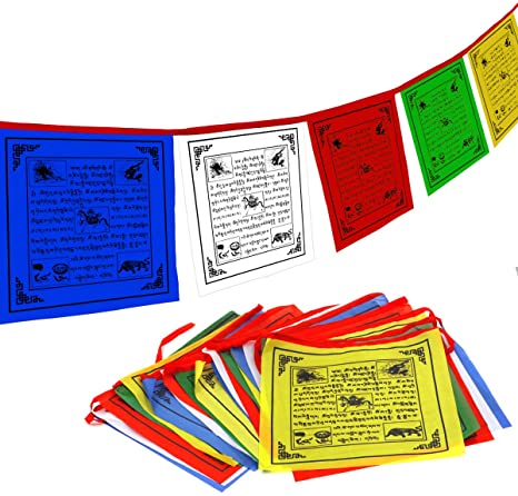 Existen banderas de cinco colores distintos, que representan los cinco elementos del budismo. Así, el azul representa el cielo; el blanco, el agua; el rojo, el fuego; el verde, el aire; y el amarillo, la tierra.