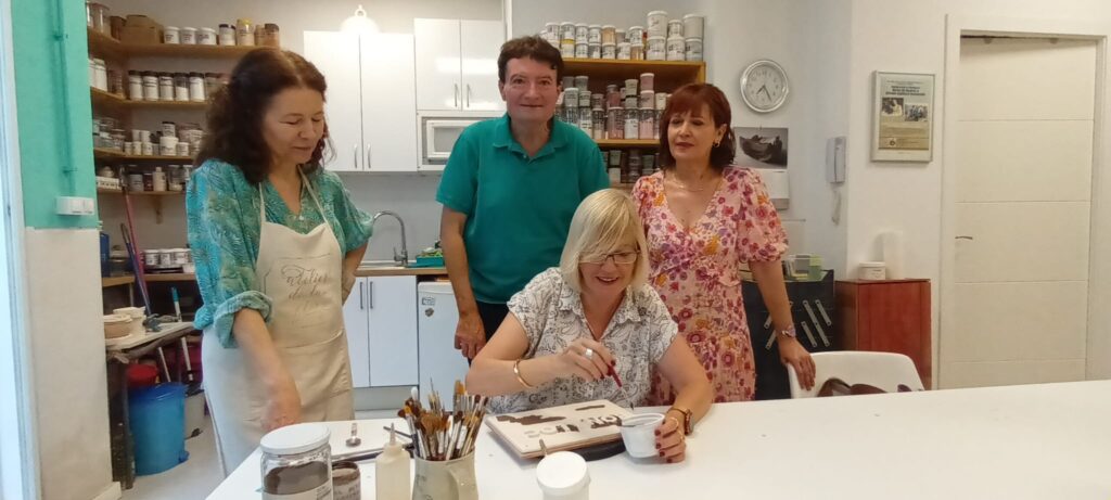 Después de elegir un nombre que evocara el sentir creativo que perseguíamos, nos pusimos manos a la obra, nunca mejor dicho, en el taller de María de Andrés, para realizar una placa de cerámica con el rótulo, destinada a la entrada de la casa, a modo de bienvenida.