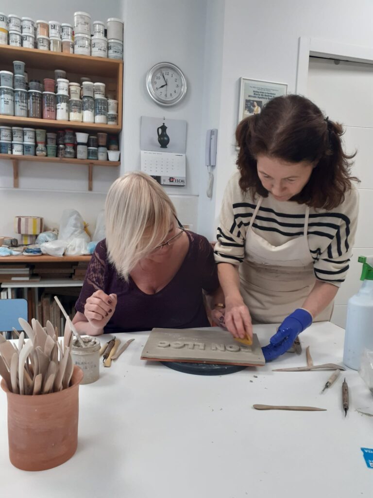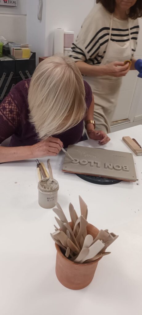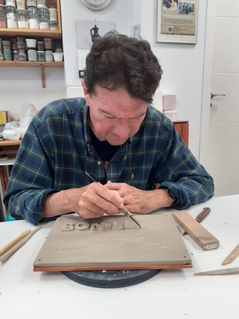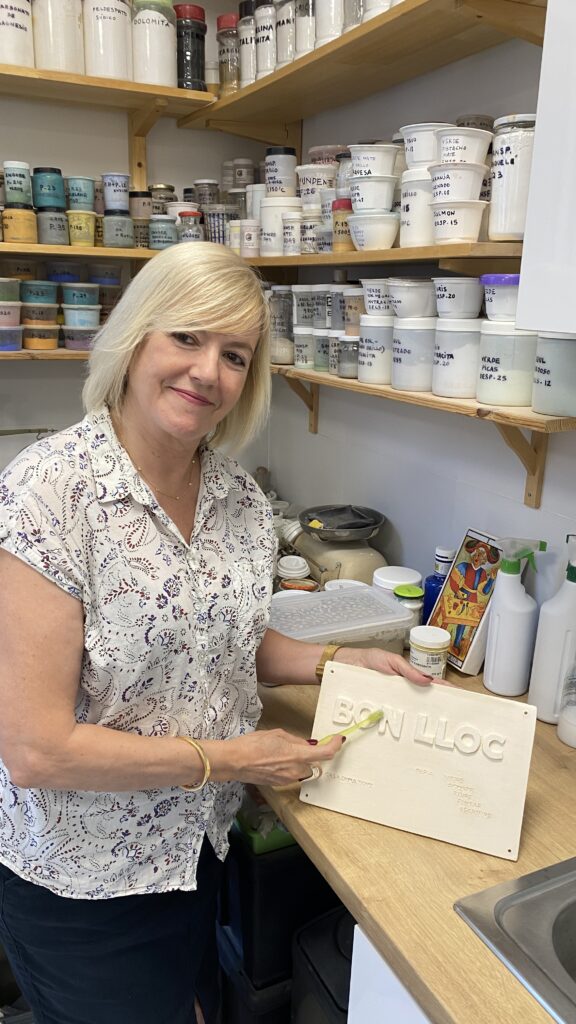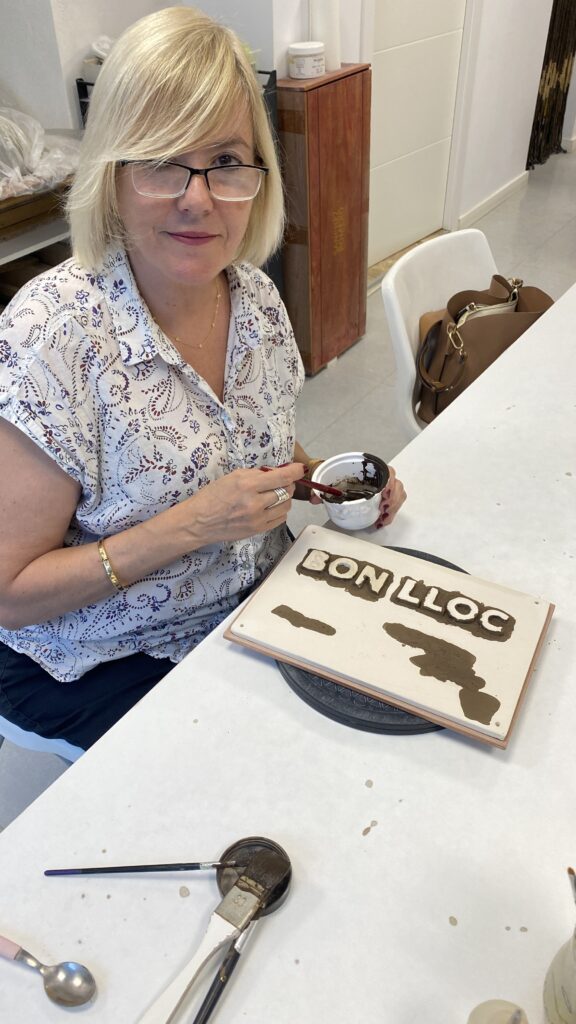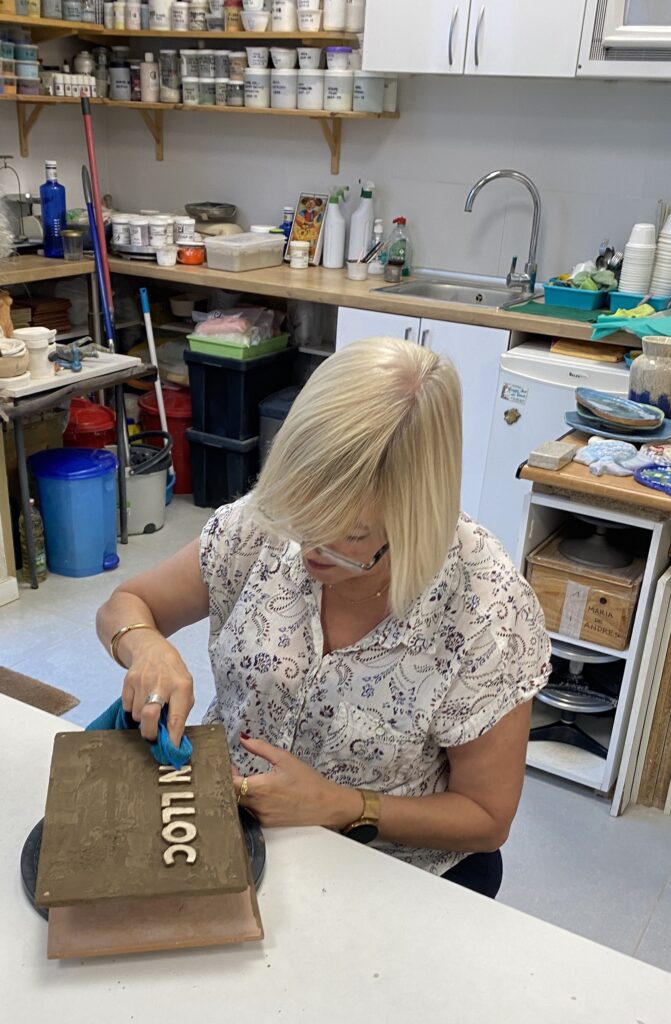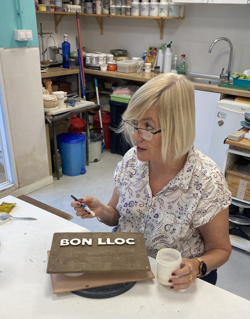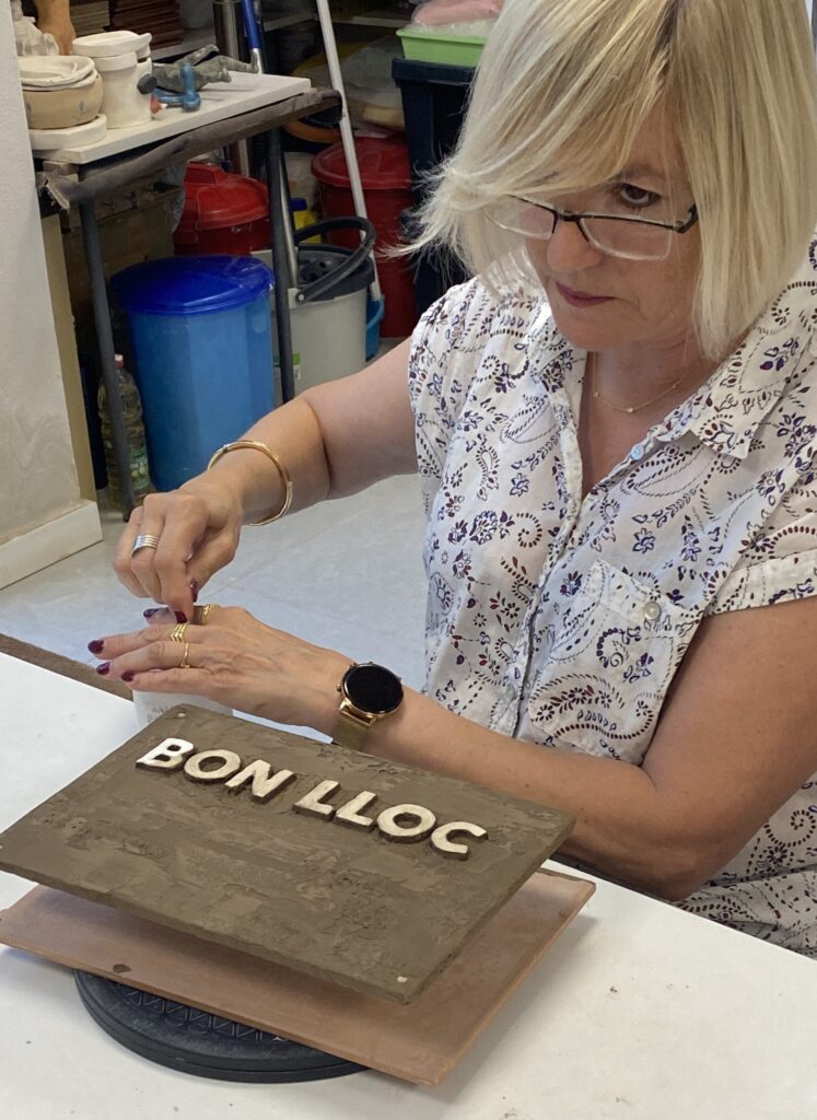 Proceso de creación en cerámica de la placa del nombre “BON LLOC” en el taller de María de Andrés.