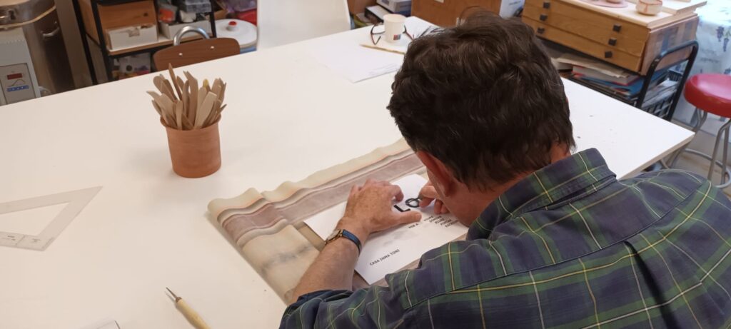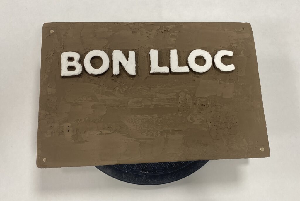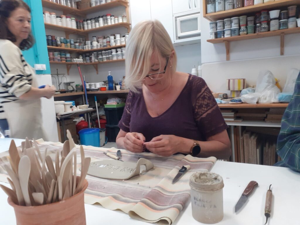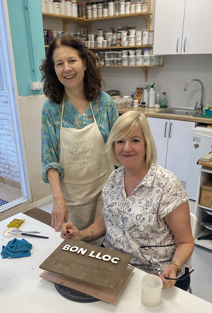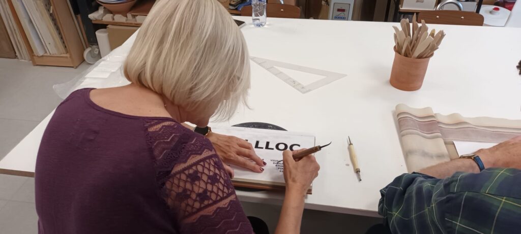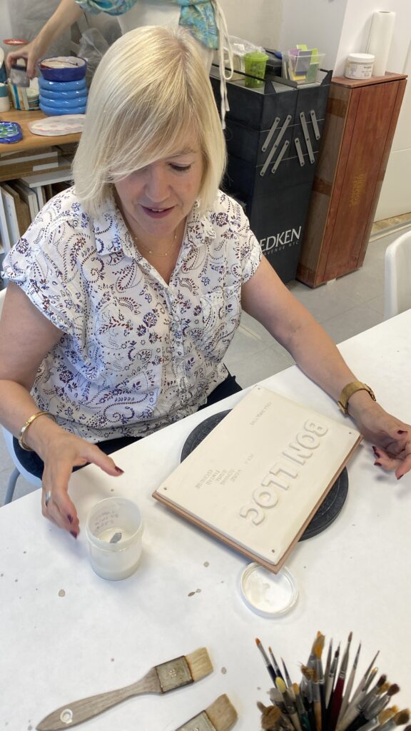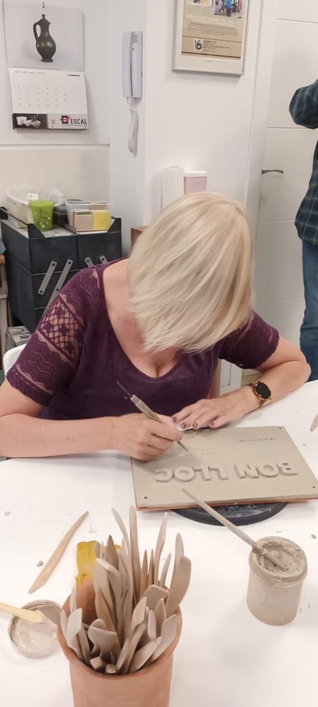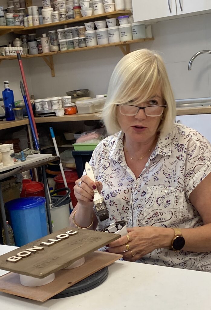 Proceso de creación en cerámica de la placa del nombre “BON LLOC” en el taller de María de Andrés.
