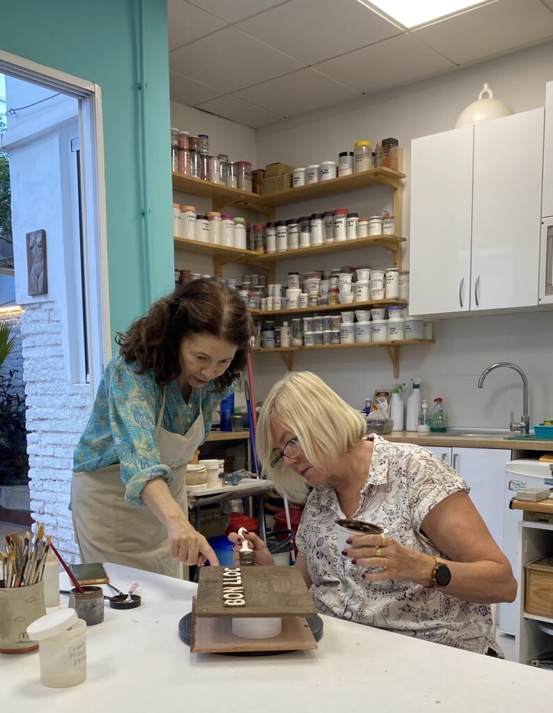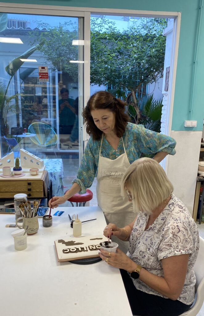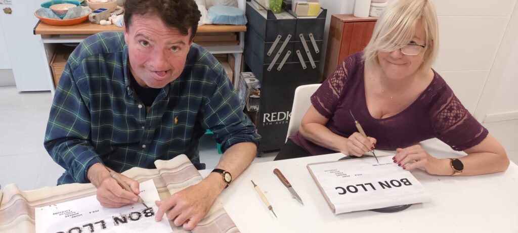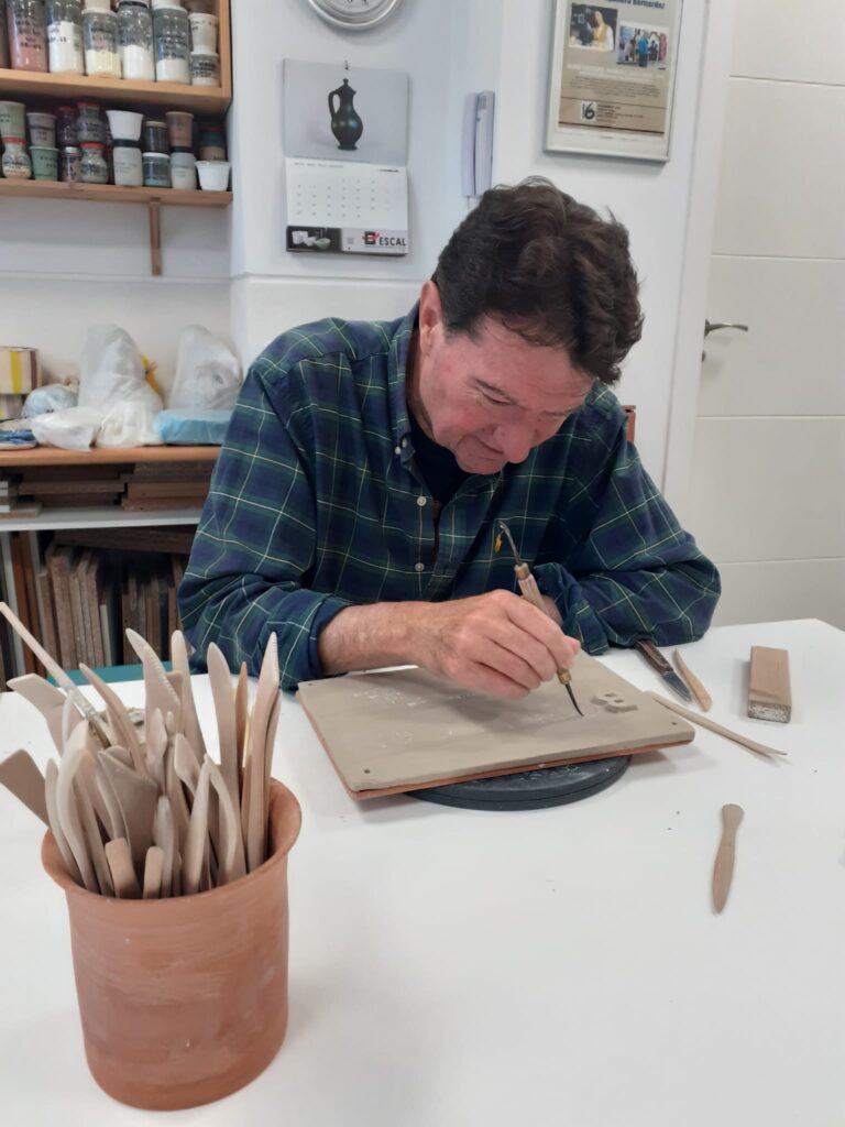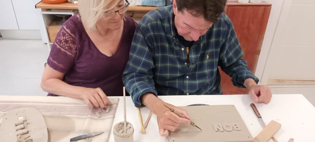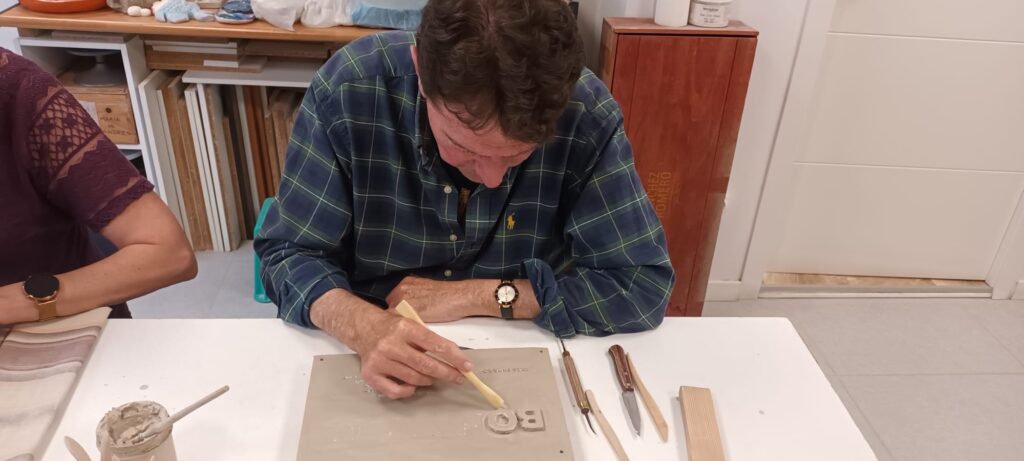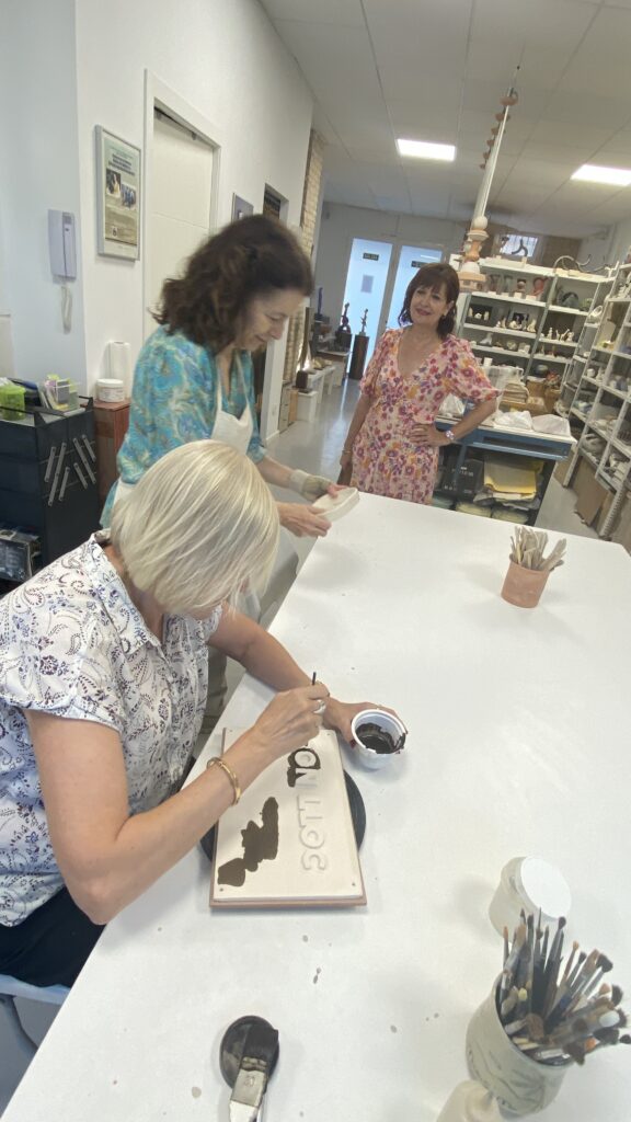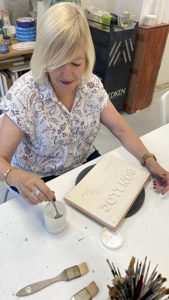 Proceso de creación en cerámica de la placa del nombre “BON LLOC” en el taller de María de Andrés.