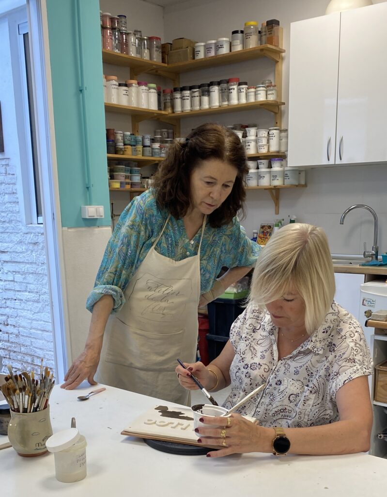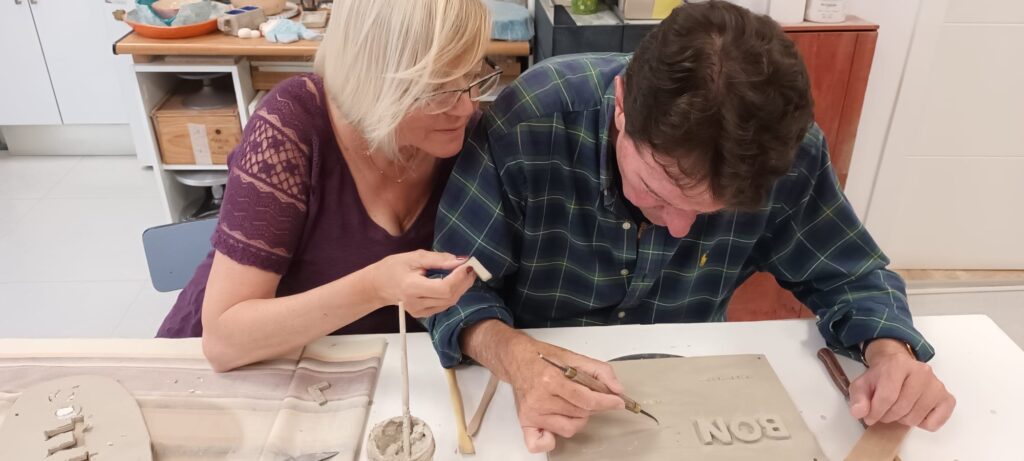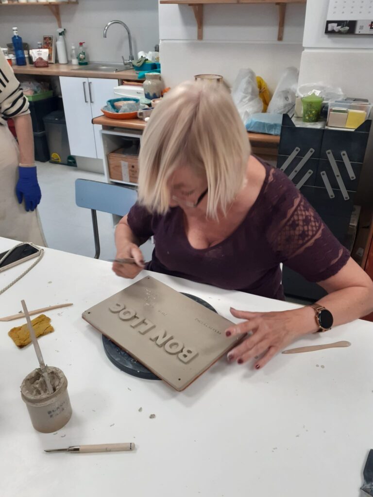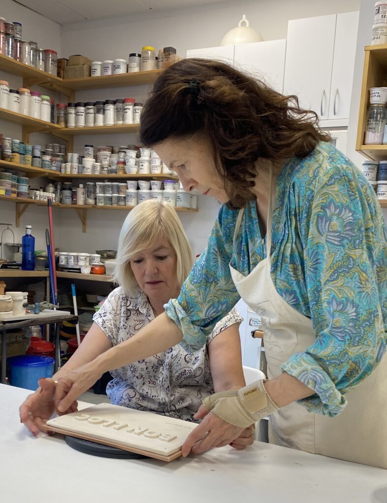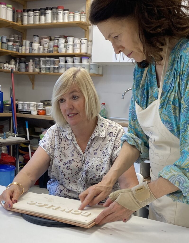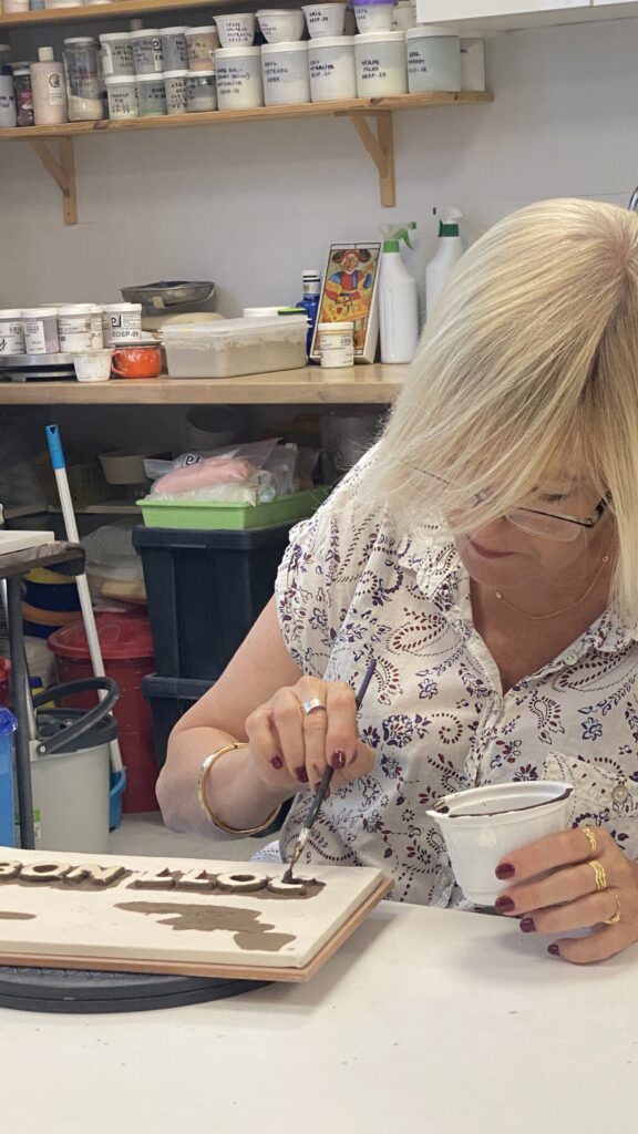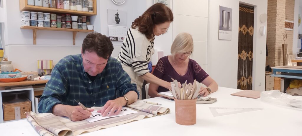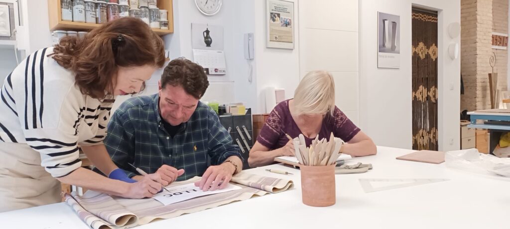 Proceso de creación en cerámica de la placa del nombre “BON LLOC” en el taller de María de Andrés.