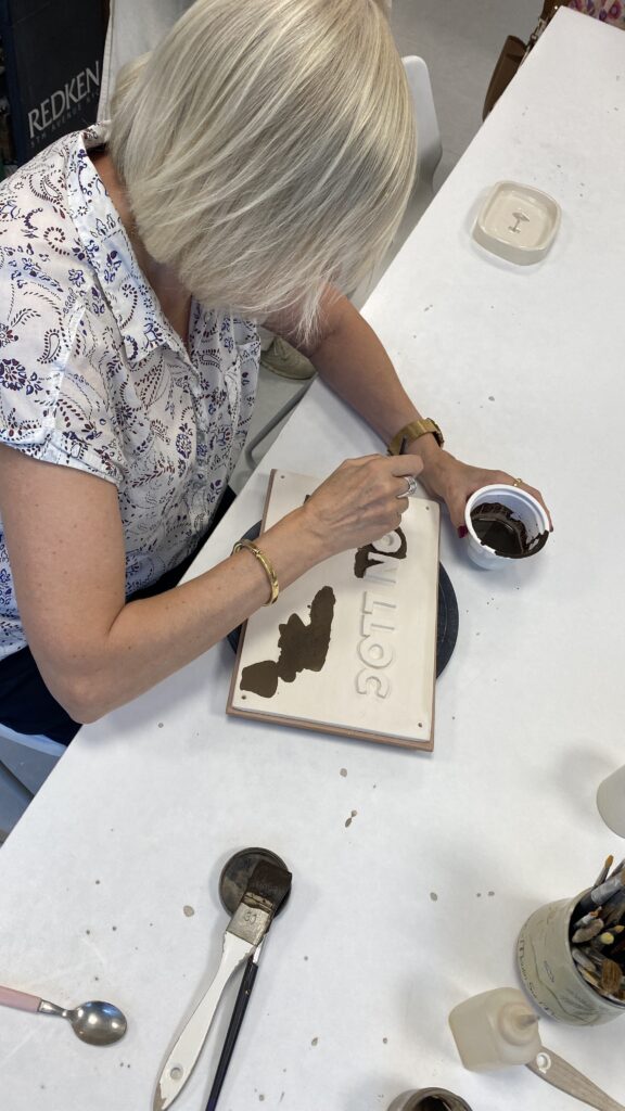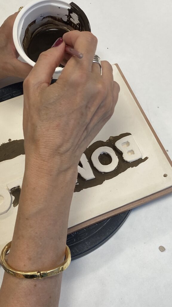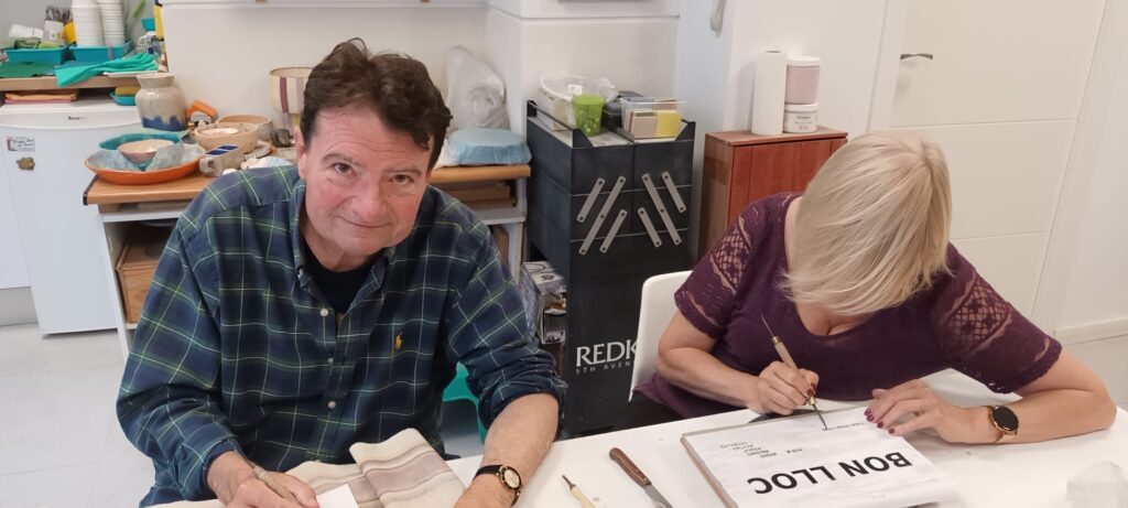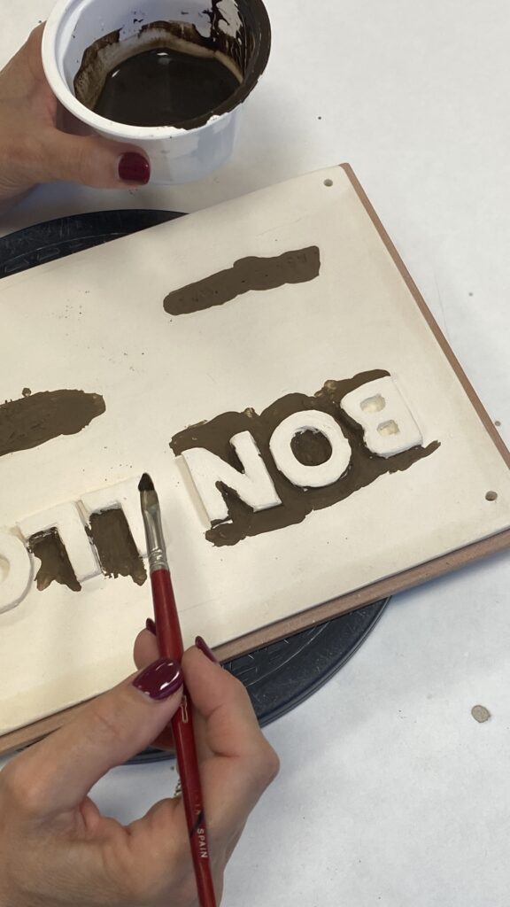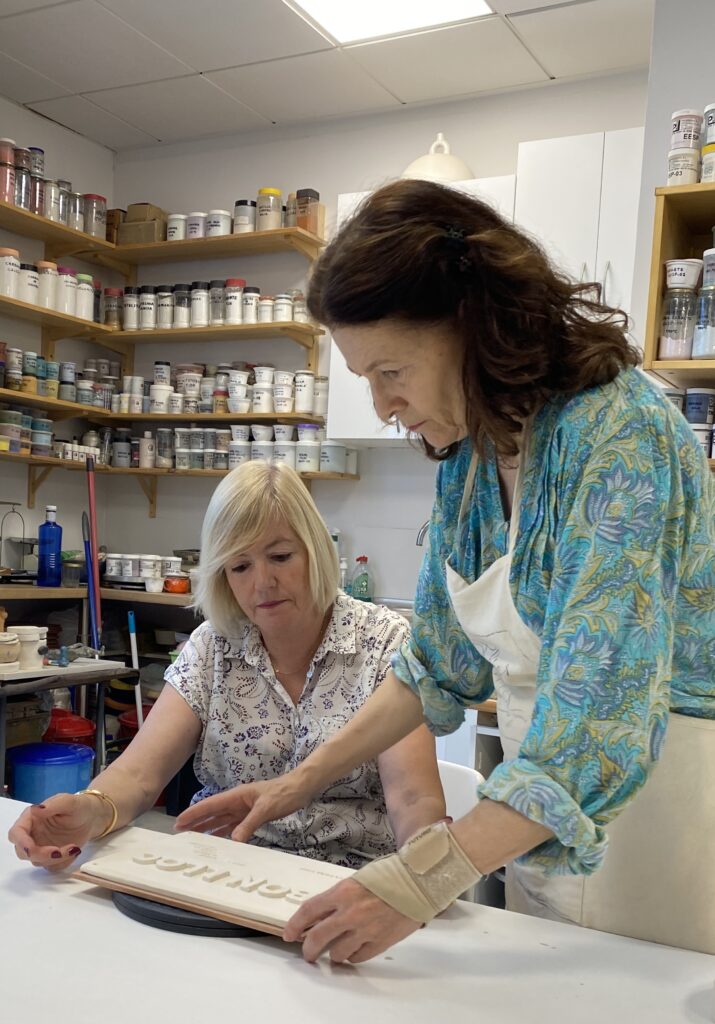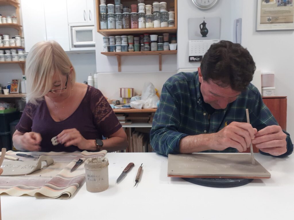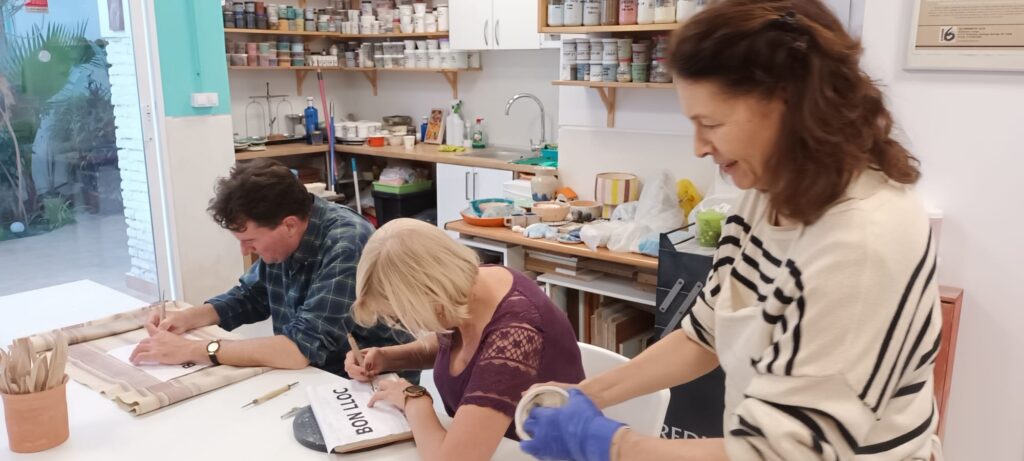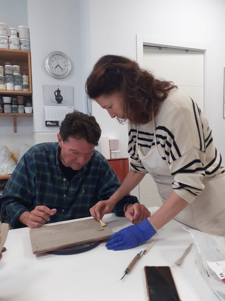 Proceso de creación en cerámica de la placa del nombre “BON LLOC” en el taller de María de Andrés.